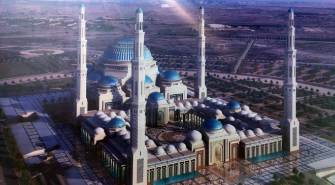 EXPO 2017 fuar alanı yanında yer alacak 30 bin kişi kapasiteli caminin temel atma törenine katılan Cumhurbaşkanı Nazarbayev, burada yaptığı konuşmada, caminin sadece bir ibadethane değil, aynı zamanda turistlerin ziyaret edeceği, şehrin önemli sembolü olacağını belirterek “Geçen hafta Birleşik Arap Emirlikleri’ne gittim ve Şeyh Zayed Camisi’ni ziyaret ettim. 3-4 yıl önce hizmete sunulmasına rağmen, onu yılda 6 milyon turist ziyaret ediyor.” dedi.