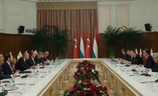 Cumhurbaşkanı Erdoğan, Tacikistan Cumhurbaşkanı İmamali Rahman ile Cumhurbaşkanlığı Sarayı’nda bir araya geldi.